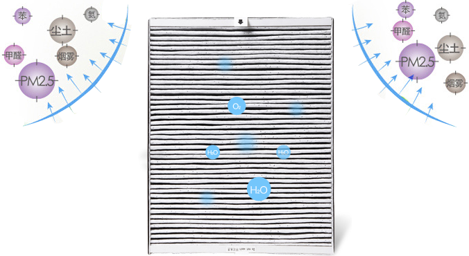 针对国内办公环境污染物多元化传播问题而自主研发的多元净化材料,集粉尘净化和气态化学污染物净化于一体,可根据具体污染物净化需求,调整配比进行净化工作,净化效率更高。