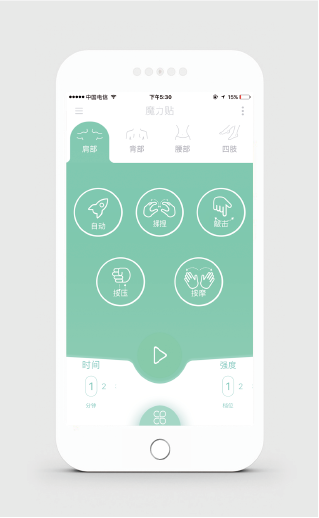 魔力贴app可以针对各个酸痛部位调节4+1种按摩手法